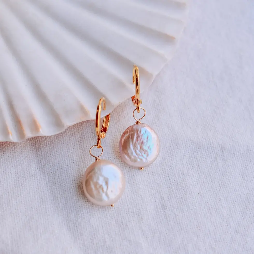 Elegant yet modern, these mini hoops feature luminous coin pearls that glow with natural beauty. Their organic shape makes each pair unique, adding character and sophistication to your everyday look.